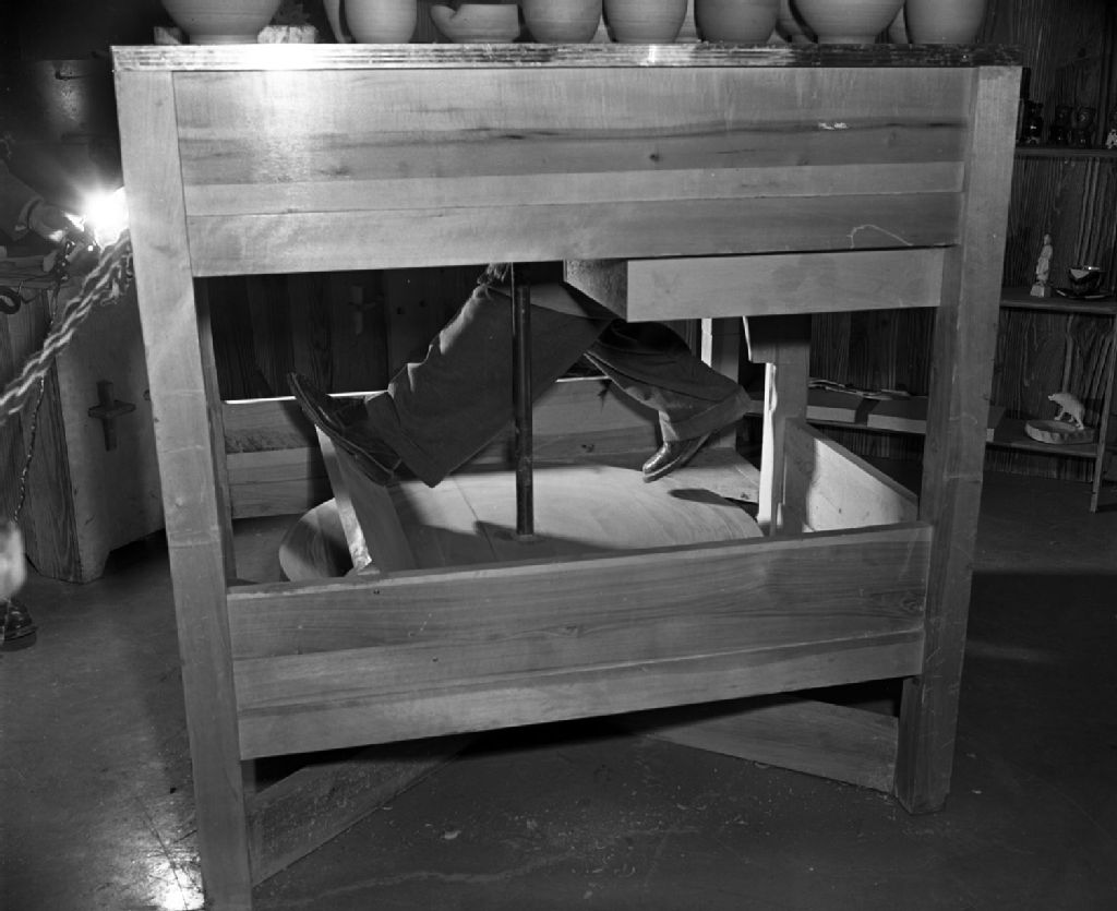 - Façonnage de poterie au tour par Gaétan Beaudin lors d'une exposition de la Centrale d'artisanat du Québec