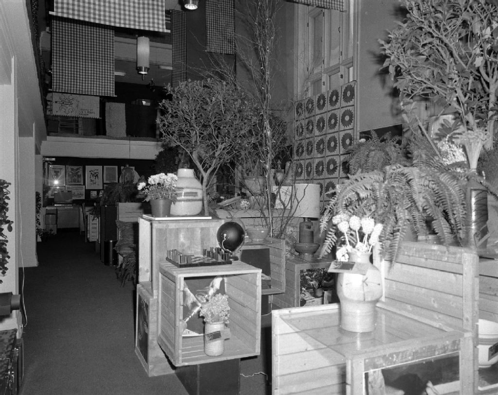 Étude de l'intérieur de la Centrale d'artisanat du Québec en vue du lancement du livre de Cyril Simard inititulé L'artisanat québécois, [Vers 1967], Archives nationales à Montréal, Fonds Armour Landry, (06M,P97,S1,D9621-9624), Armour Landry.