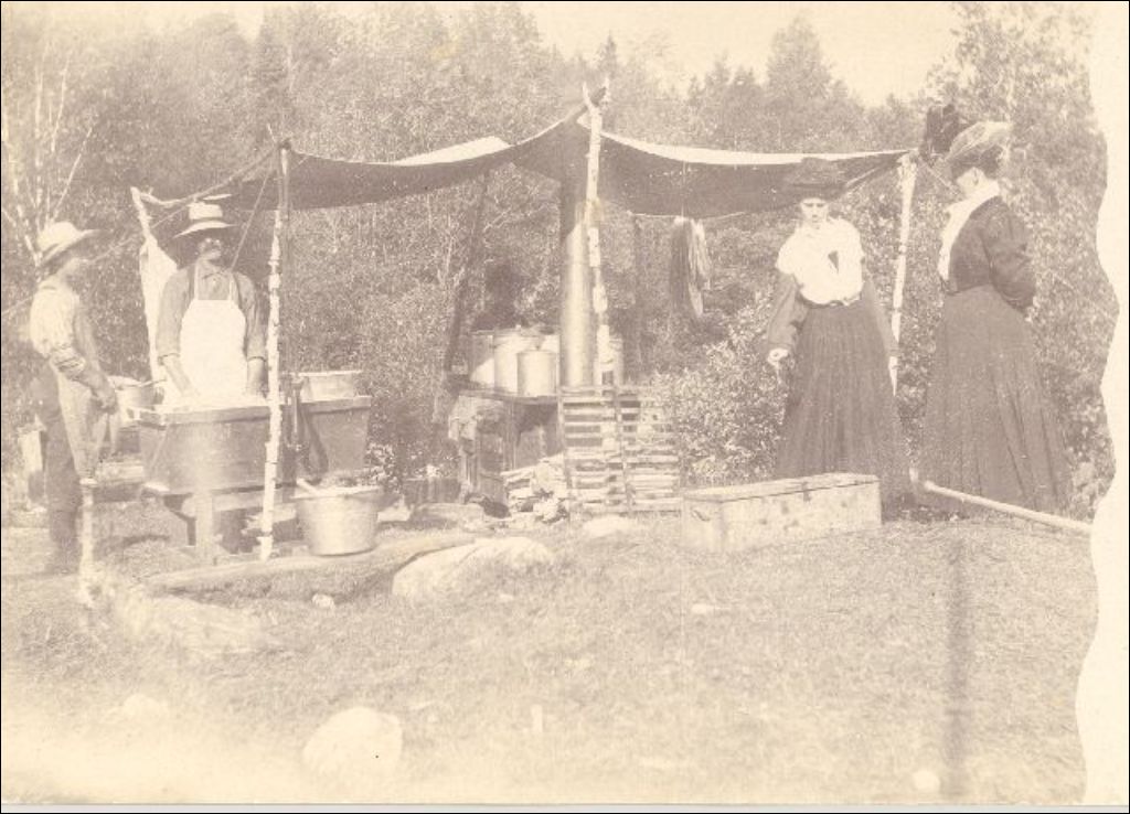Deux familles de bûcherons à leur campement de Priests' Mills près de la rivière Joseph