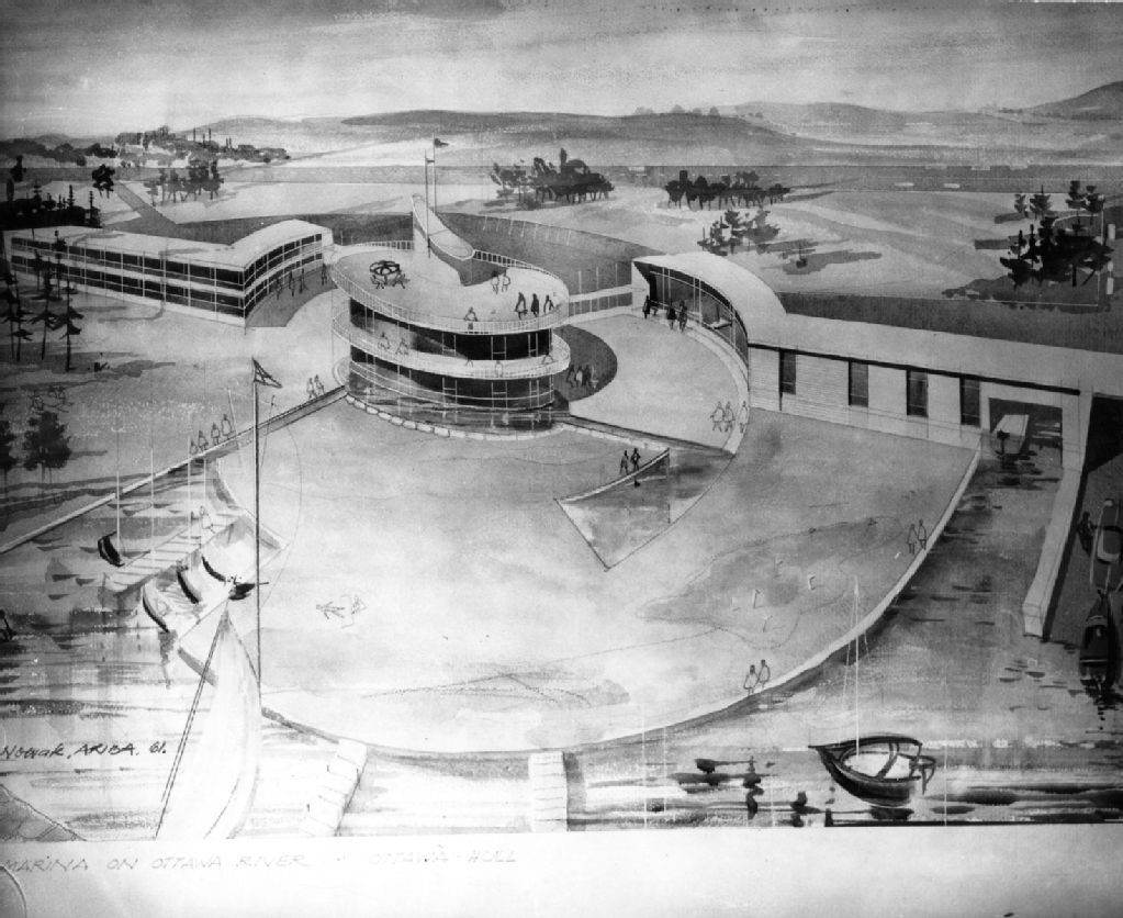 Maquette d'un projet de marina sur la rivière des Outaouais à Hull-Ottawa, 1961, Archives nationales à Gatineau, Fonds Aimé Guertin, (07H,P8,S1,D21), Photographe non identifié.