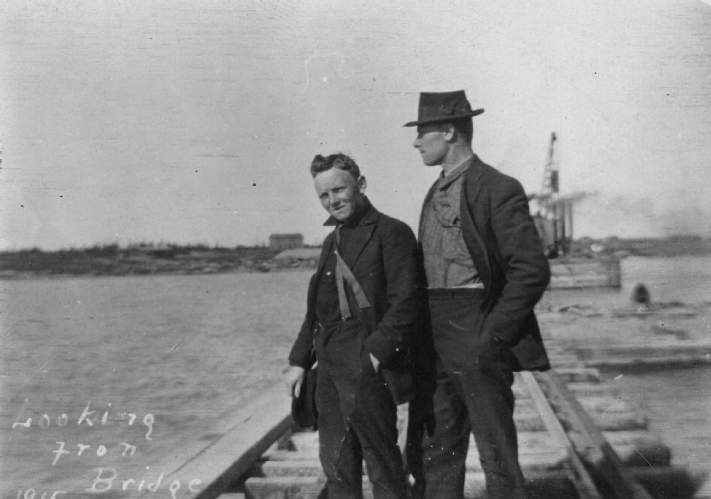 - Le dossier documente le voyage que Aimé Guertin et un ami (un certain Cardinal d'Aylmer) ont entrepris à l'été 1915 à la recherche de travail ; on y voit des instantanés montrant Aimé Guertin au quai de Port Nelson, le chantier naval de Port Nelson, une montagne de glace (iceberg) dans le Détroit d'Hudson, le bateau S.S. Fort York à Port Nelson, la capture d'un ours polaire par un baleinier et les installations de la Gendarmerie Royale du Canada (R.N.W. Police); on y voit aussi Aimé Guertin photographié avec des enfants autochtones et quelques instantanés montrant les tentes et habitations de familles amérindiennes