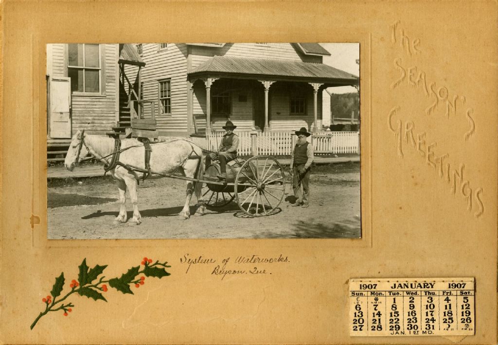 Transport d'eau par baril sur une charrette tirée par un cheval, [1907, 1923], Archives nationales à Gatineau, Fonds Richard Ritchie, (07H,P19,S2,D8), Photographe non identifié.
