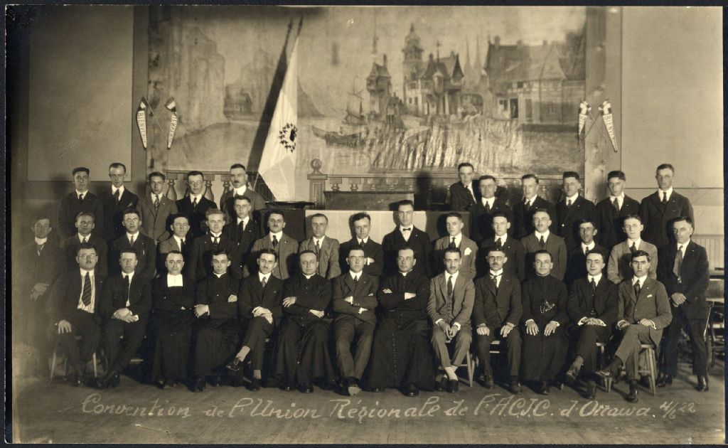 - Convention de l'Union régionale de l'A.C.J.C. d'Ottawa en 1922 ; Groupe de congressistes à la Fête champêtre à Ville LaSalle lors du 20ième anniversaire 1904-1924 de l'A.C.J.C., photographié par Henri Fortier, photographe de Montréal ; Membres (11) du Comité régional d'Ottawa de l'A.C.J.C., dont l'abbé Joseph Hébert