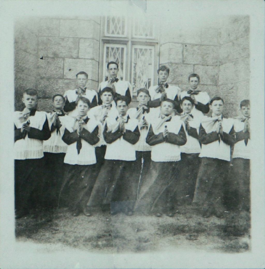 Enfants de choeur, les mains jointes, devant le Sanctuaire de la Cathédrale d'Ottawa