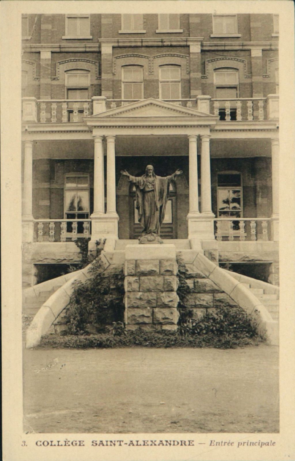 - Le dossier se compose de cartes postales, imprimées par les Pères du Saint-Esprit du Collège Saint-Alexandre à Limbour, utilisées comme cartes de voeux (Noël, Nouvel An) ou invitations (réunions lors de la Pentecôte); on y voit la façade de l'édifice du Collège en hiver, l'entrée principale du Collège (Statue du Sacré-Coeur), la rivière Gatineau, les chutes sur la rivière Gatineau, une vue du pont de bois, le pont de l'île en hiver