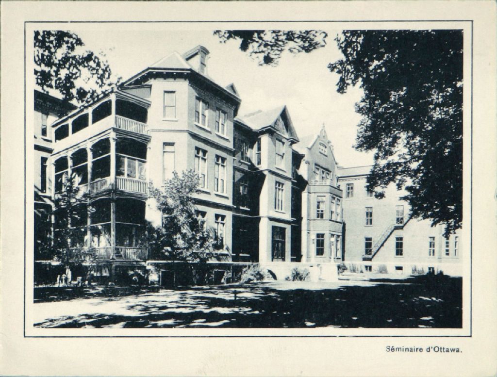 Séminaire d'Ottawa et Hôtel du Parlement du Canada : Carte de voeux, [194-?], Archives nationales à Gatineau, Fonds Joseph Hébert, (07H,P63,S1,D12), Photographe non identifié.