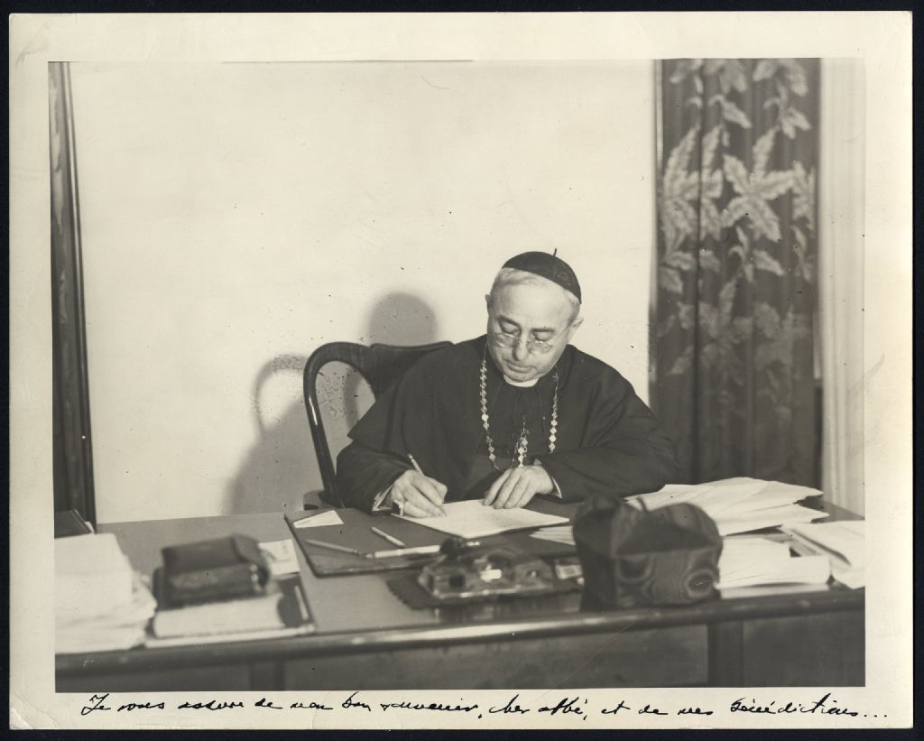 Cardinal Jean-Marie-Rodrigue Villeneuve à son bureau, [193-?], Archives nationales à Gatineau, Fonds Joseph Hébert, (07H,P63,S1,D22), Photographe non identifié.