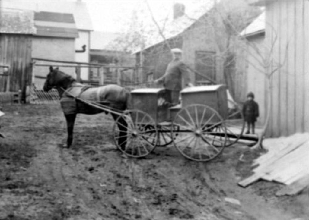 M. Labelle, marchand ambulant de Hull, debout dans un chariot tiré par un cheval, [192-?], Archives nationales à Gatineau, Fonds Émile Laurent, (07H,P74,D281), Laurent, Émile.