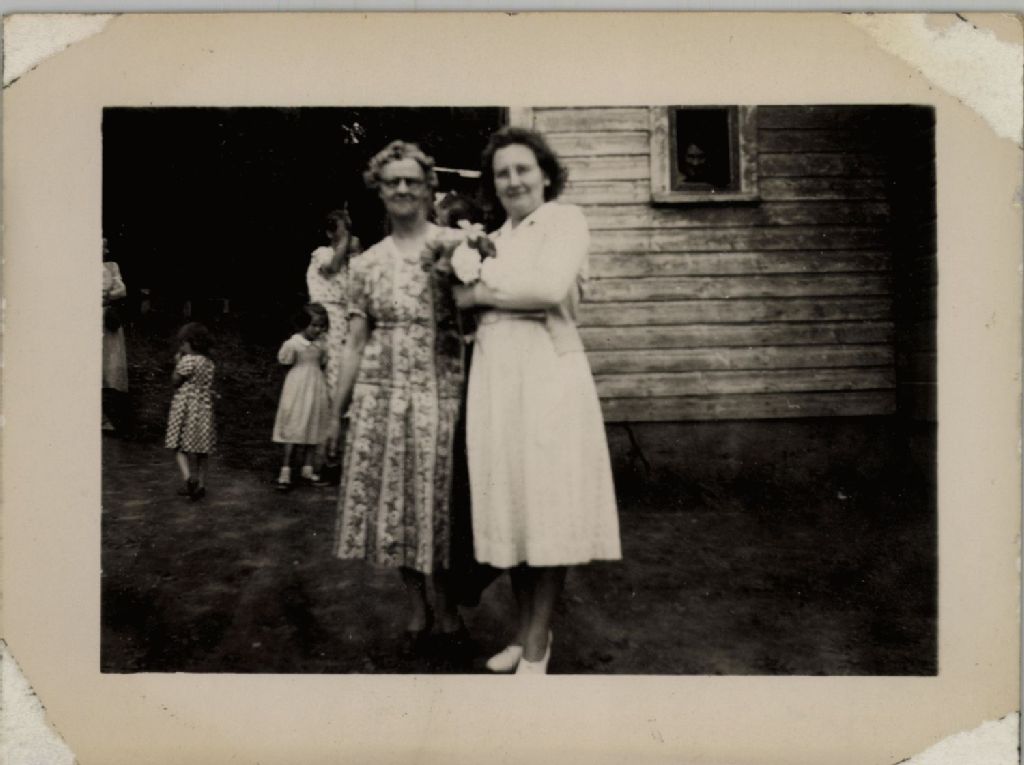 - Fidèles rassemblés devant les églises baptiste et luthérienne de Mulgrave, dont le Père Braceland