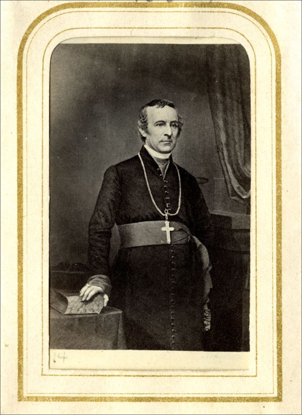 Monseigneur John Hughes, évêque de New-York, 1860, Archives nationales à Gatineau, Fonds Famille Foran, (07H,P137,S4,D10,P14), Thompson (S.J.) & Company.