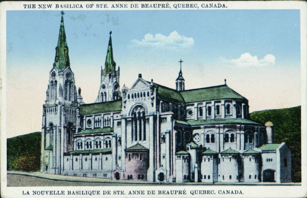 - La Nouvelle Basilique de Ste. Anne de Beaupré, Quebec, Canada / Hôpital St-Michel-Archange Mastaï (près Québec) ; View of the Sanctuary of Perpetual Adoration, Quebec ; The Basilica, Ste. Anne de Beaupré, P.Q
