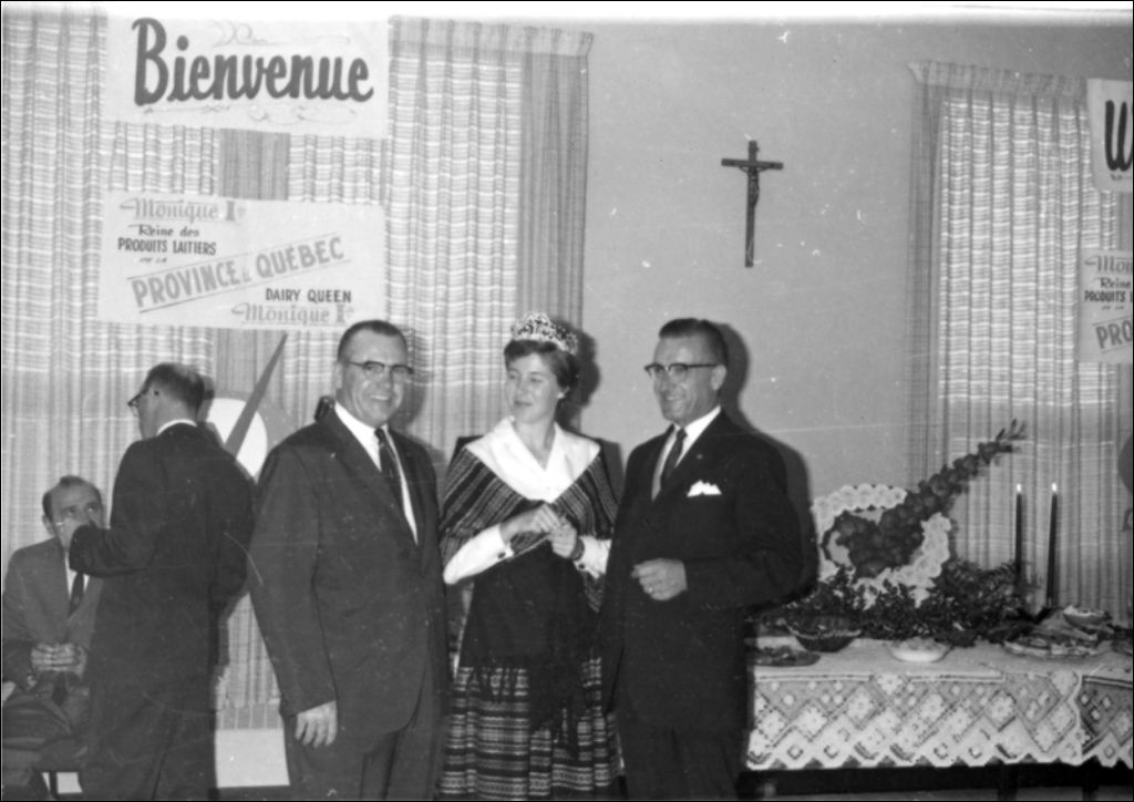 Réception officielle en l'honneur de Monique 1ère, Reine des produits laitiers, 1963, Archives nationales à Rouyn-Noranda, Fonds Louis-Philippe Dallaire, (08Y,P239,P244), Photographe non identifié.