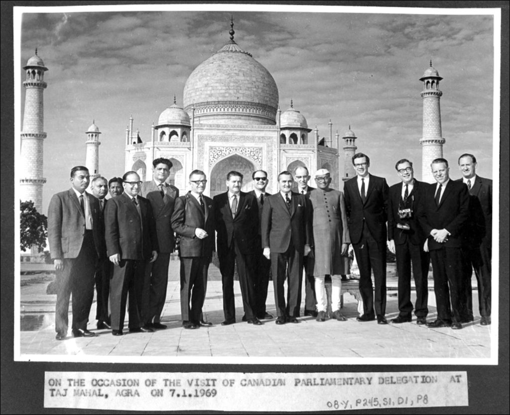 À l'occasion de la visite de la délégation parlementaire canadienne à Tadj Mahall dans la ville d'Agra.Réal Caouette est le 6e à partir de la gauche.