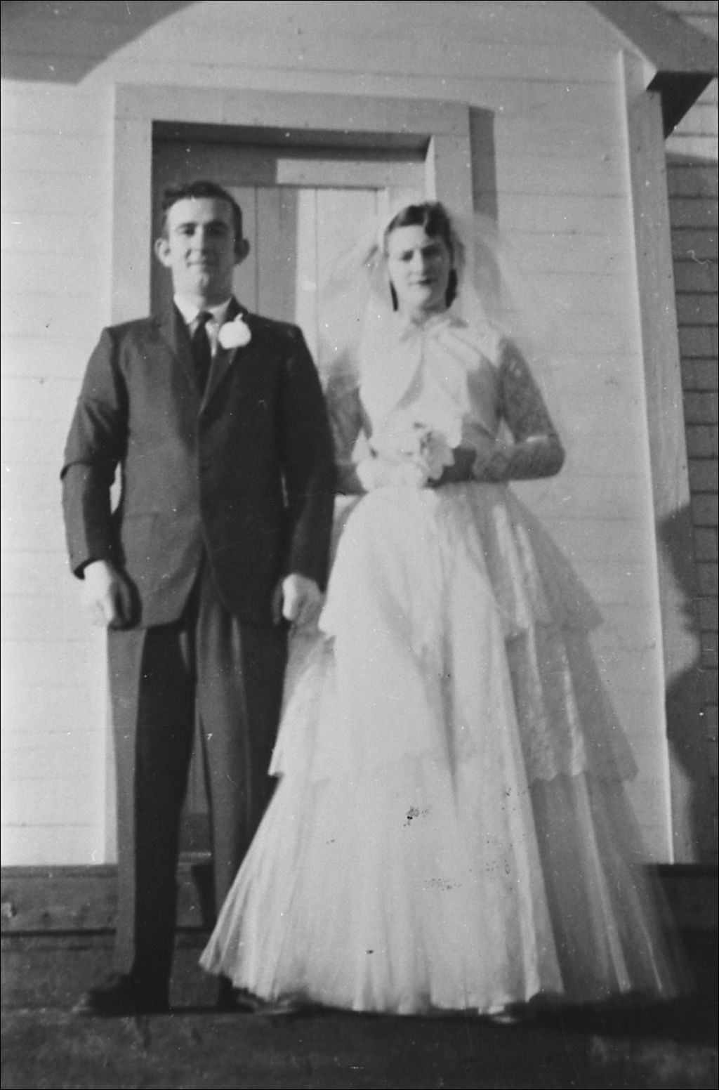 Couple de mariés (la fille de May Lavallée), 1961, Archives nationales à Sept-Îles, Fonds Groupe d'action et de développement économique et culturel de la Basse Côte-Nord, (09N,P12,S2,P227), Groupe d'action et de développement économique et culturel Basse-Côte-Nord.