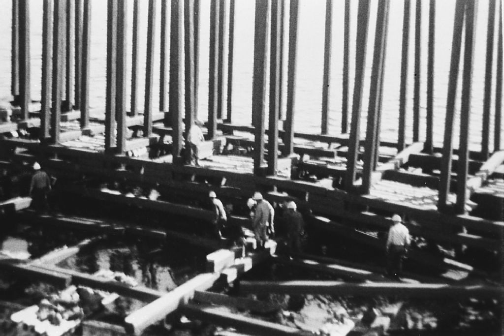 Construction du quai de Old Fort, 1973, Archives nationales à Sept-Îles, Fonds Groupe d'action et de développement économique et culturel de la Basse Côte-Nord, (09N,P12,S2,P241), Groupe d'action et de développement économique et culturel Basse-Côte-Nord.