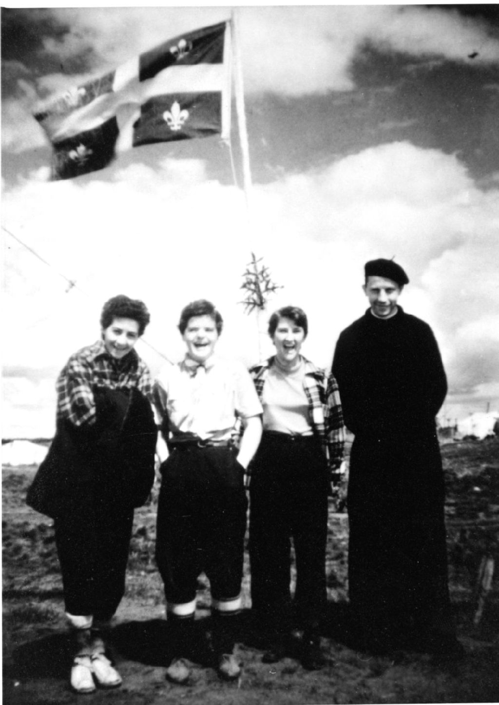 Jeanne d'Arc Gagnon, infirmière, Adrienne Tremblay, infirmière, Michèle Asselin, institutrice et le père Alexis Joveneau, o.m.i.