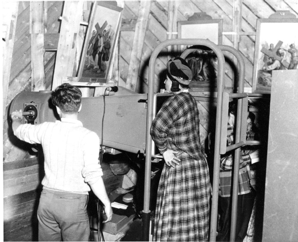 Technicien effectuant un contrôle pulmonaire avec un appareil de dépistage, 1949-1960, Archives nationales à Sept-Îles, Fonds Pauline Laurin, (09N,P60,S1,SS1,P79), Laurin, Pauline.