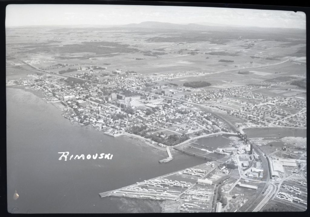 - Le dossier présente plusieurs vues aériennes, avant l'incendie de 1950, de la ville donnant sur le fleuve Saint-Laurent et de Sainte-Odile. Sur l'une des photographies, nous apercevons la scierie de la Compagnie Price Brothers à l'embouchure de la rivière Rimouski et les ponts du Canadien National et celui menant vers Nazareth.
