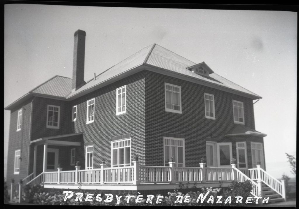 La photographie illustre le presbytère de L'Annonciation-de-Nazareth. Cette photographie est intéressante pour représenter l'aspect d'origine de ce bâtiment qui a subi de nombreuses transformations depuis sa construction vers 1939.