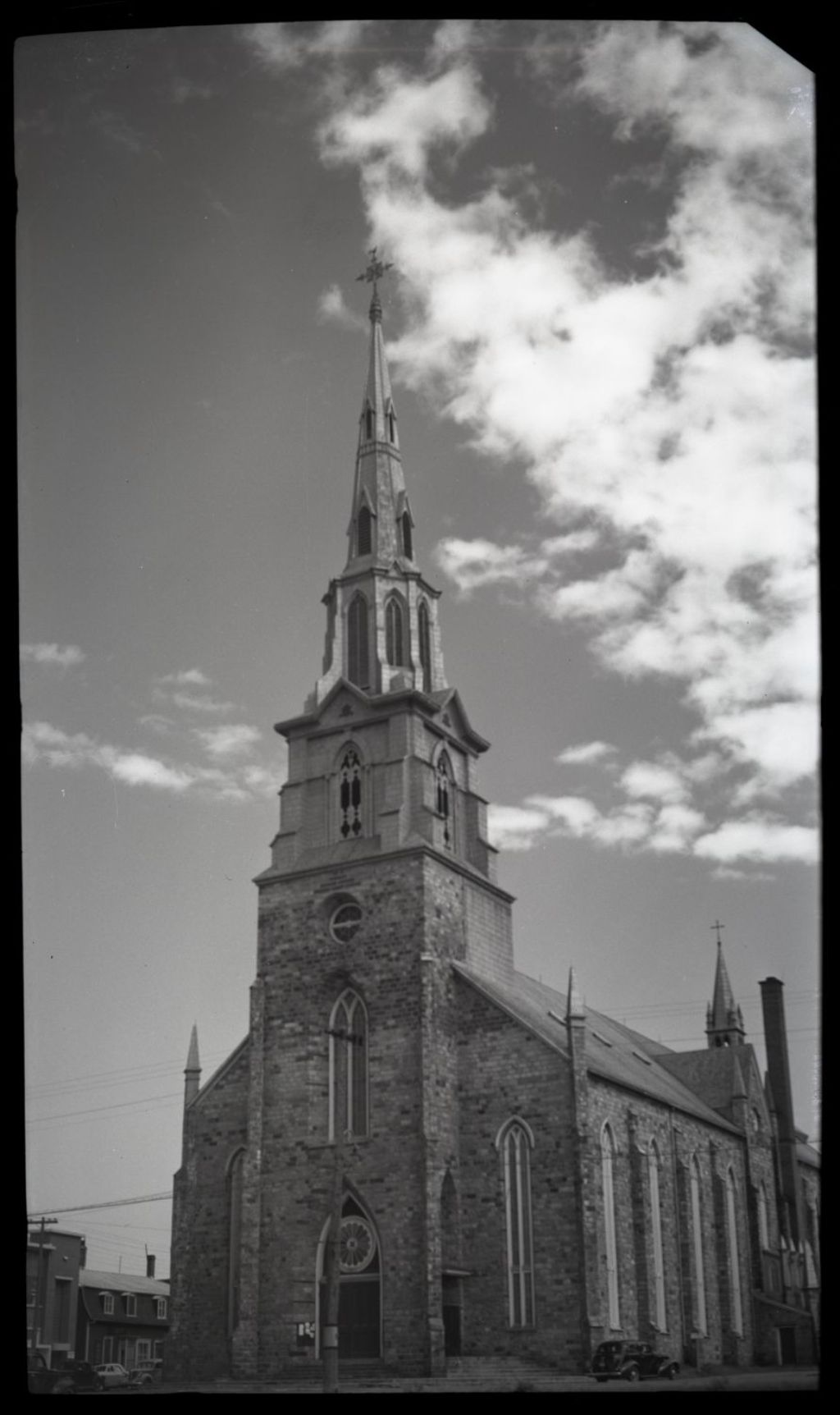 - Le dossier présente une vue de la façade de l¿édifice prise de la rue Saint-Germain. Une seconde prise de vue présente le côté droit de l¿édifice mettant en évidence ses deux clochers.