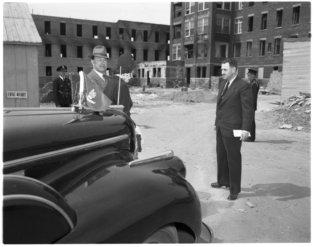Lord Alexander, sa femme et le maire de Rimouski, Victor Lepage sur le lieu du sinistre