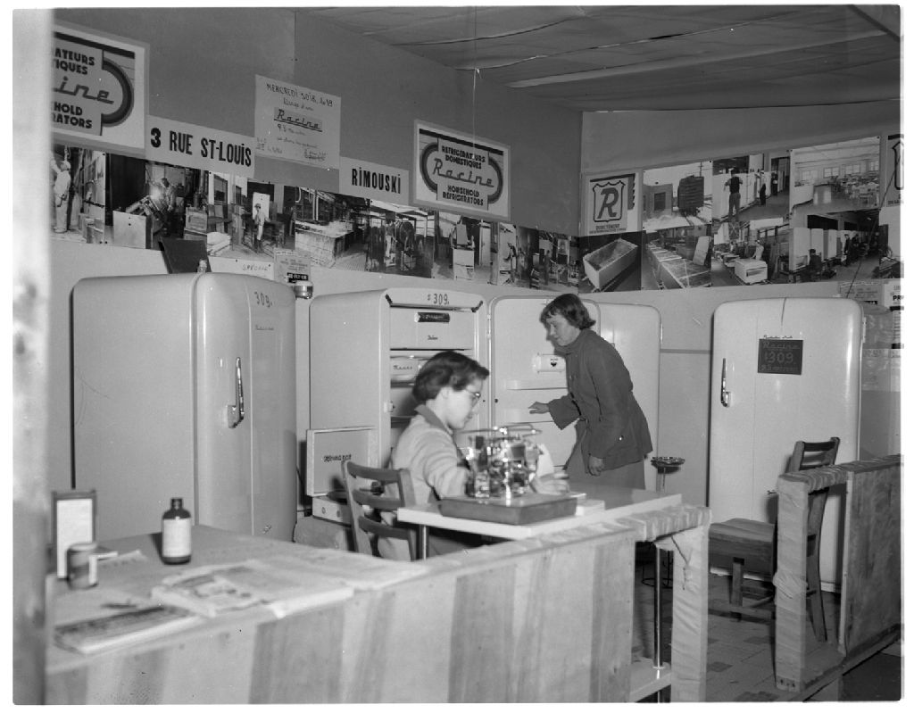 Les réfrigérateurs Racine, 19 août 1953, Archives nationales à Rimouski, Fonds J.-Gérard Lacombe (En traitement), (01R,P24,S3,SS7,D195,P11), J.-Gérard Lacombe.