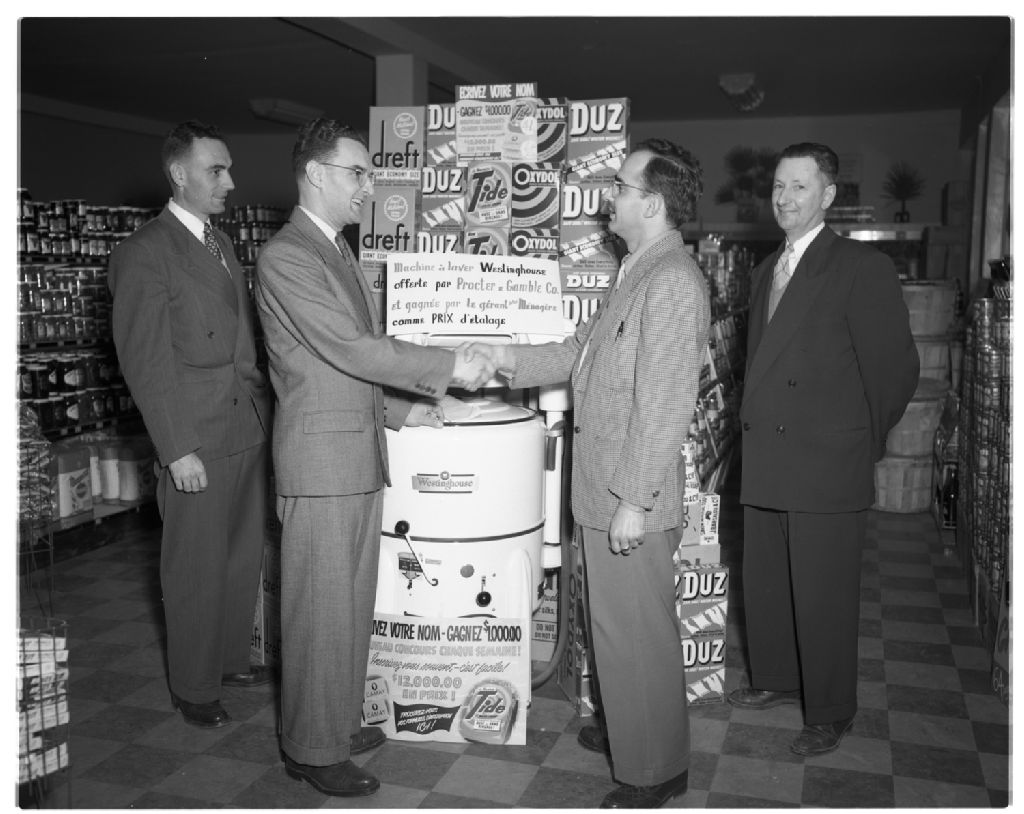 Remise d'une laveuse électrique de La Ménagère à M. Belzile par la Compagnie Procter et Gambel Co.