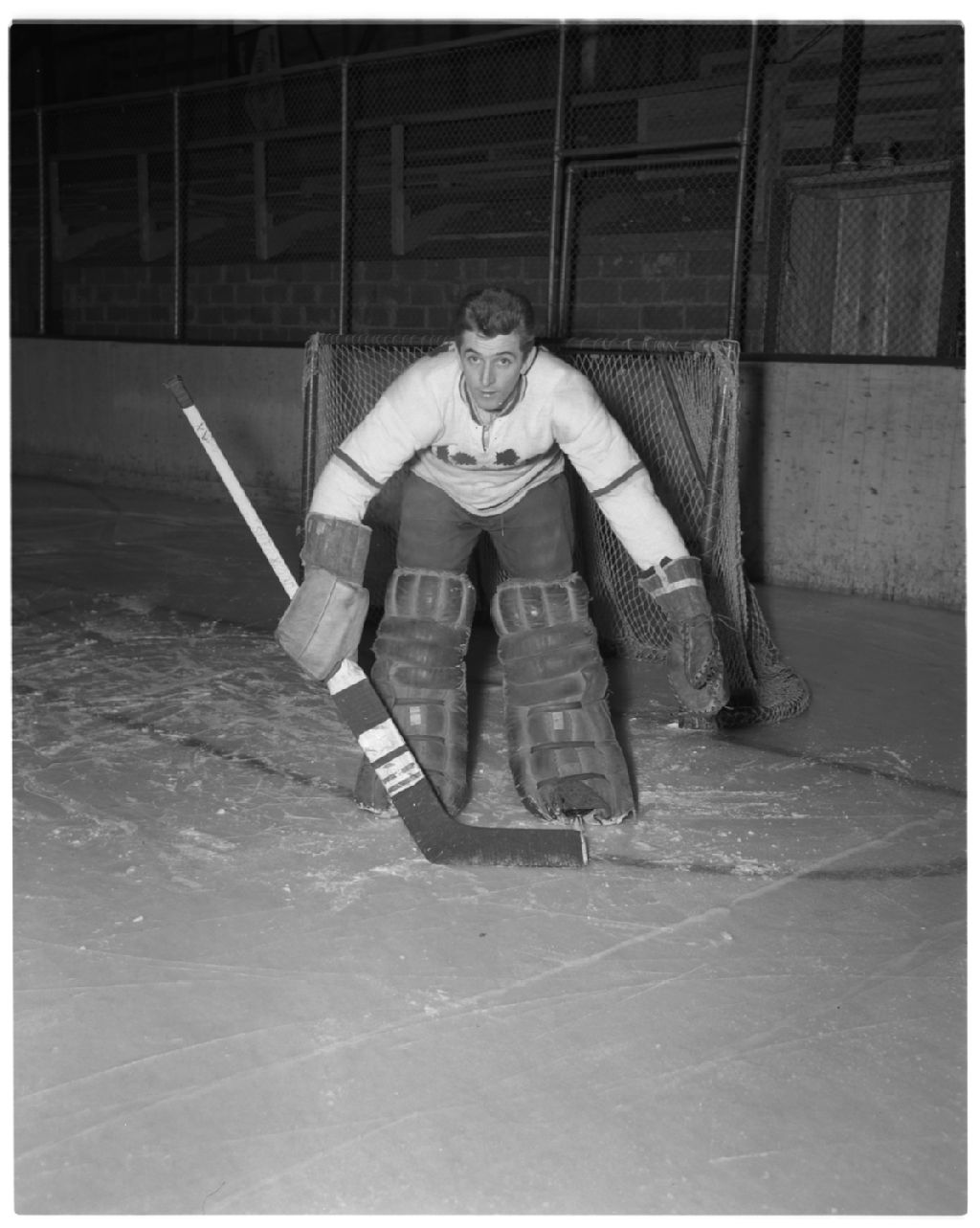- Prises de vues au colisée des joueurs des Feuilles d'Érable de Rimouski. De gauche à droite : Philippe Brillant, Amédé Raymond et Paul Brillant