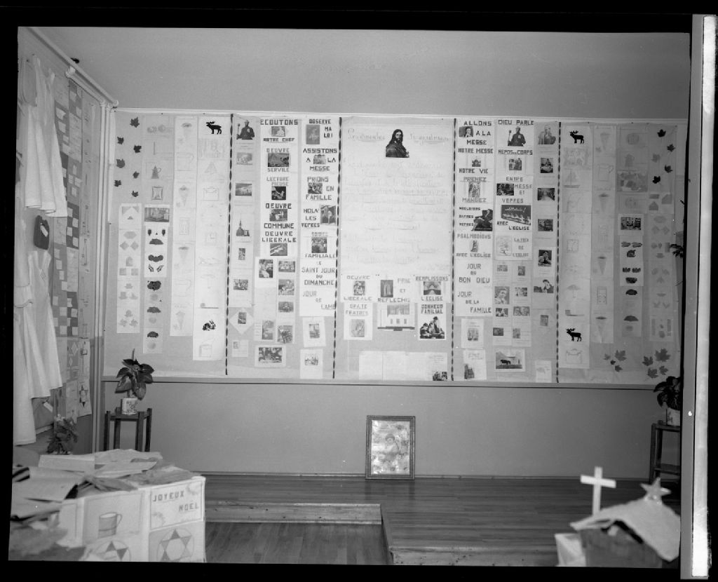 - Les photographies représentent une exposition de la communauté, un crucifix et une statuette de Marie