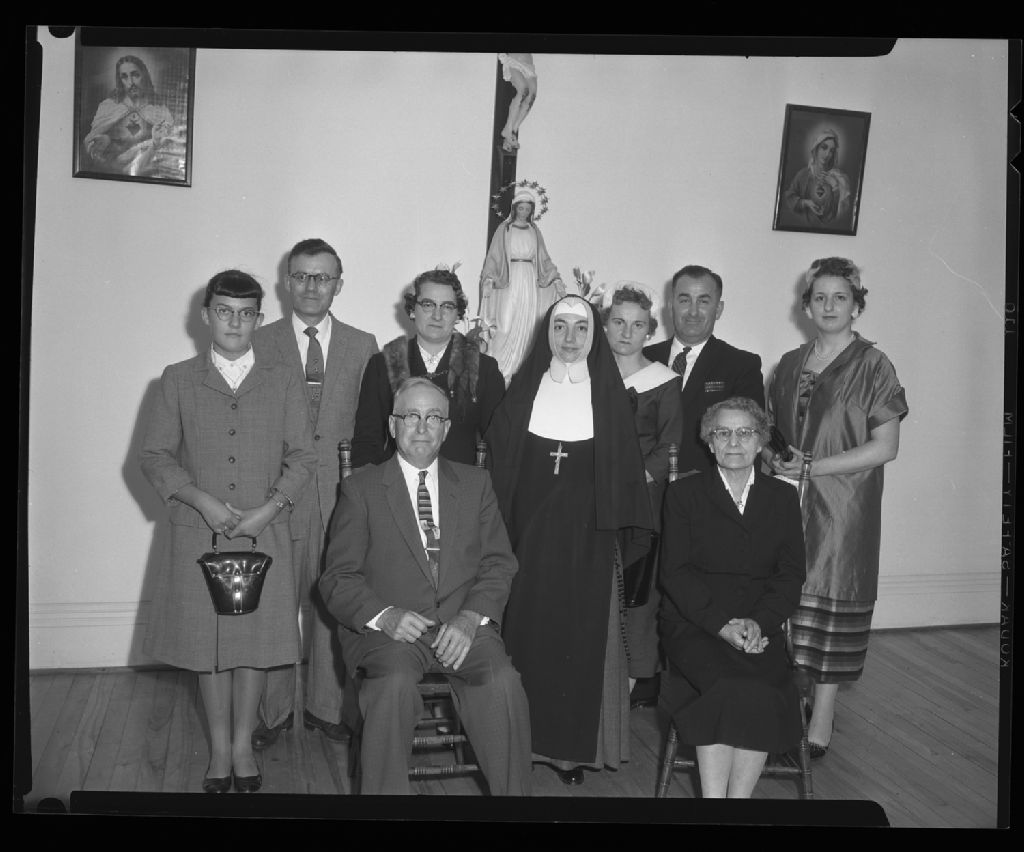 - Les photographies représentent la famille Morin de St-Louis-du Ha! Ha! qui entoure Mère Marie-de-Ste-Claire du St-Sacrement à l'occasion de la prise d'habit