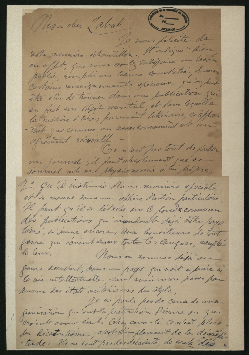 - Dans cette lettre, possiblement adressée à Gaston P. Labat, fondateur de la revue mensuelle bilingue « The Canadian Military Review », Arthur Buies critique les publications canadiennes dont le contenu intellectuel manque de spécificité et d¿originalité