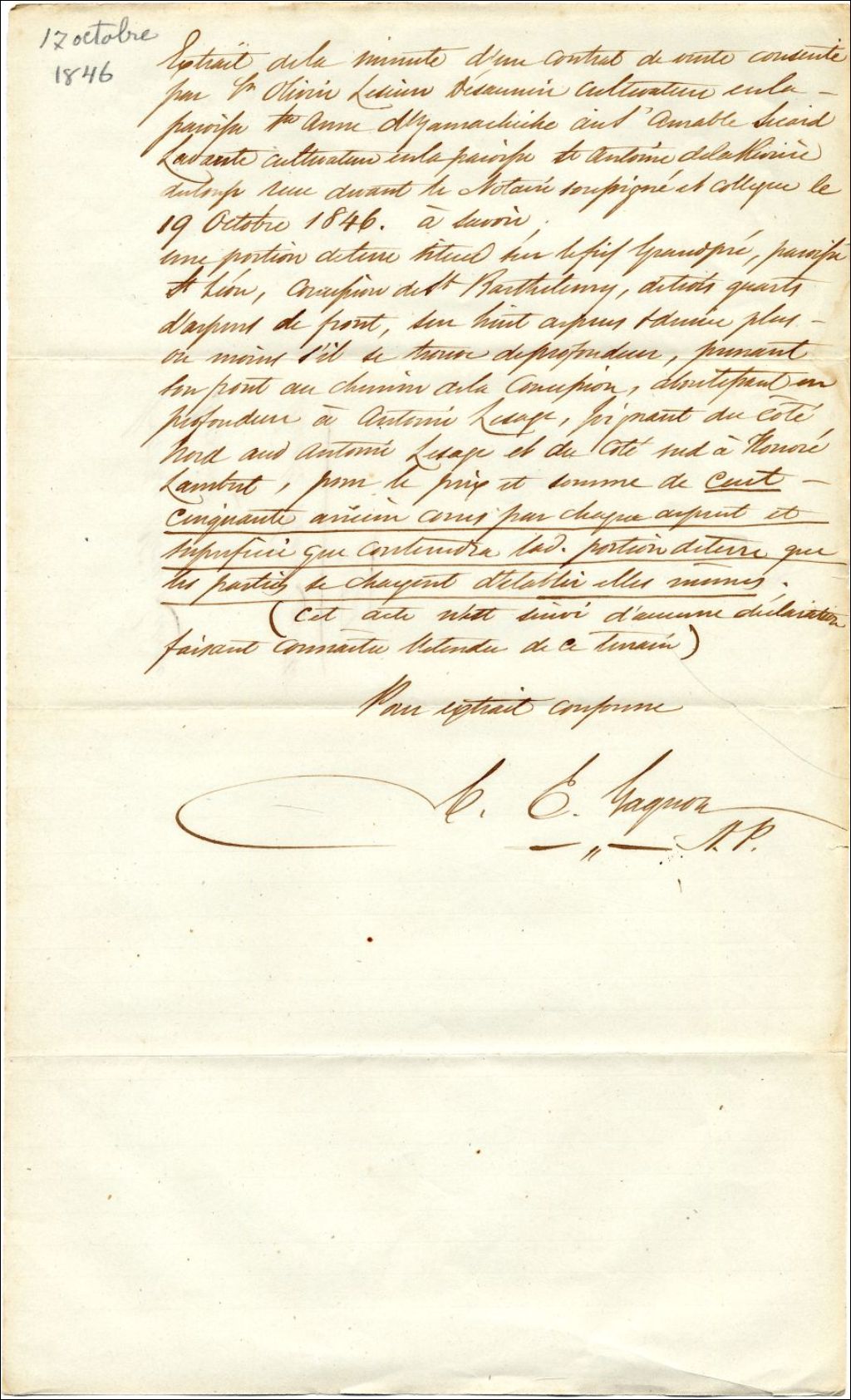 - Ce dossier contient des extraits de ventes pour la paroisse Sainte-Anne entre le 17 octobre 1846 et 1855