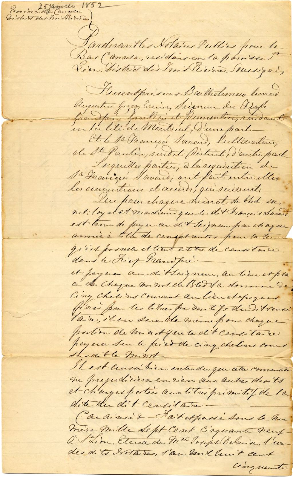- Ce dossier contient des extraits de ventes et des profits de lots pour la paroisse Saint-Paulin entre le 23 février 1852 et le 22 août 1854