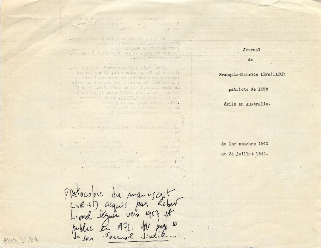 - Photocopie du Journal d'un patriote exilé en Australie, volume 4