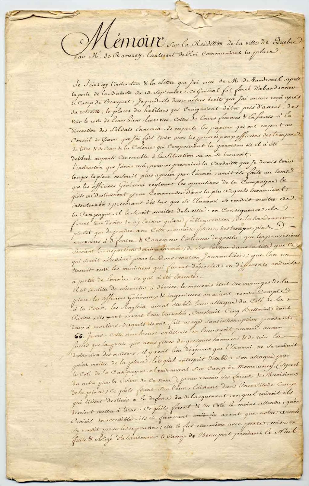 Mémoire sur la reddition de la ville de Québec par Ramezay