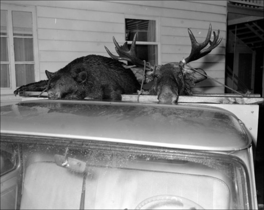 Orignal et ours, 1967-10-10, Archives nationales à Québec, Fonds Paul-Émile Duplain, (03Q,P322,S3,D10-4), Photographe non identifié.