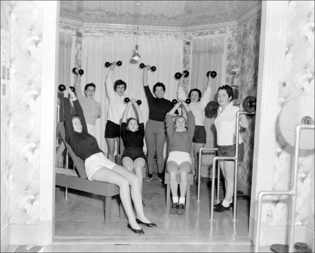 Culturistes féminines, 1955-12-03, Archives nationales à Québec, Fonds Paul-Émile Duplain, (03Q,P322,S3,D20-2), Photographe non identifié.
