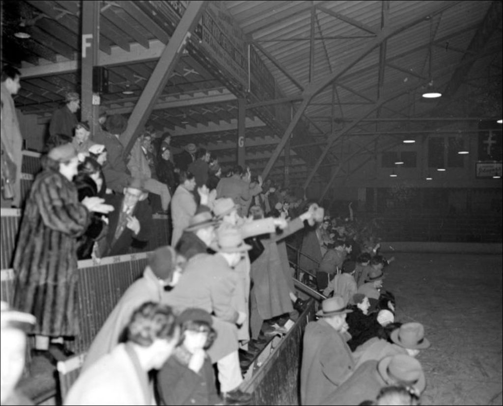 Partie de hockey entre Saint-Basile et Saint-Marc-des-Carrières, 1954-03-21, Archives nationales à Québec, Fonds Paul-Émile Duplain, (03Q,P322,S3,D7-9), Photographe non identifié.