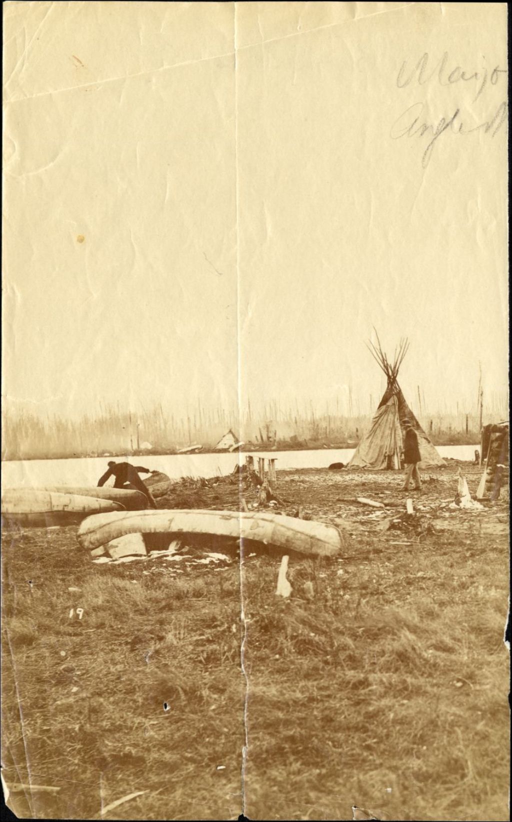 Campement amérindien, Vers 1900, Archives nationales à Québec, Fonds Famille Taché, (03Q,P407,S2,D1,P3), Photographe non identifié.