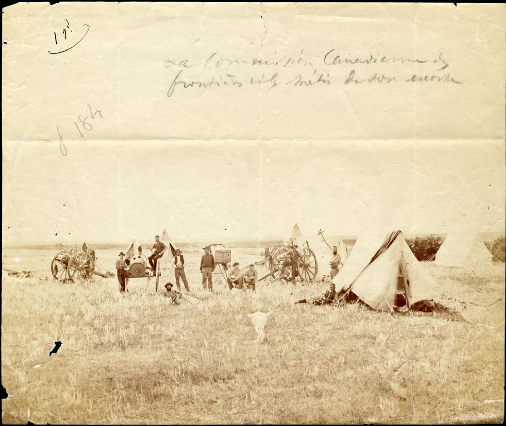 La commission canadienne des frontières et les métis de son escorte, Vers 1900, Archives nationales à Québec, Fonds Famille Taché, (03Q,P407,S2,D1,P8), Photographe non identifié.
