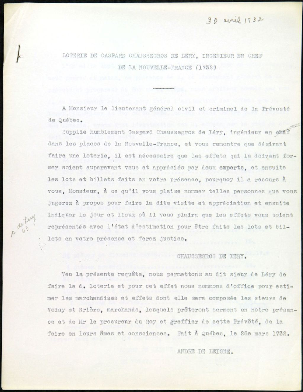 - 30 avril 1732