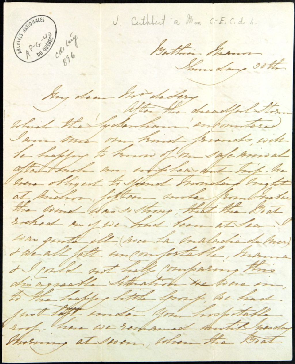 - Lettre de J. Cuthbert à Mme Charles-Étienne Chaussegros de Léry