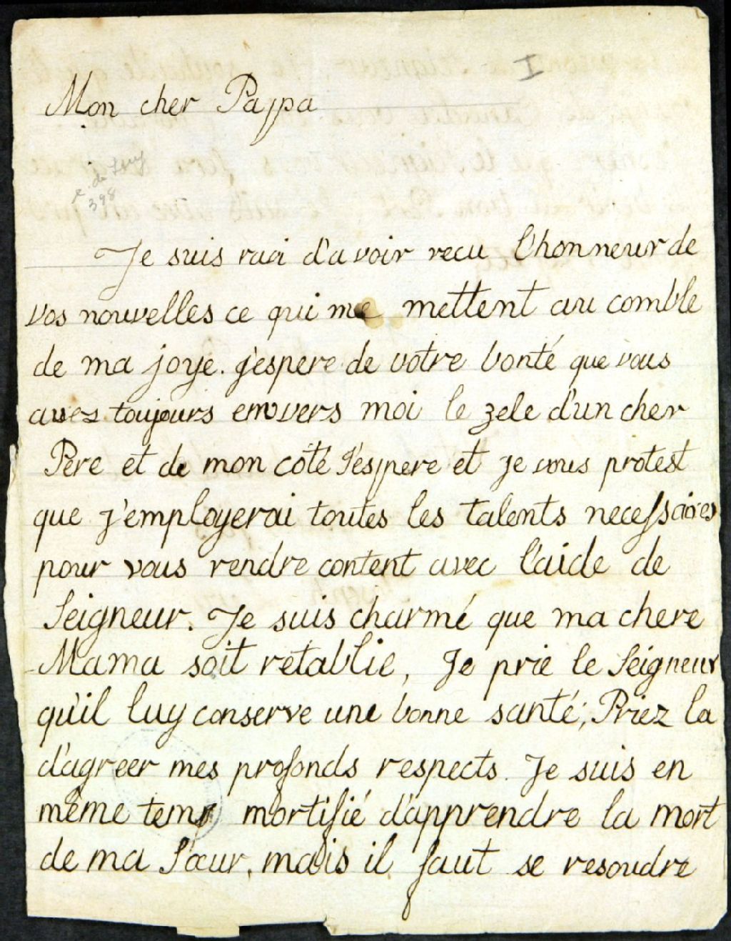 Recueil de 51 lettres écrites par François-Joseph Chaussegros de Léry, et adressées à Gaspard-Joseph Chaussegros de Léry, son père. Il est intitulé « Lettres de F. J. C. De Léry Ingenieur au corps Royal admis a LEcole Le Meziere le 1.er fevrier 1773 », 14 octobre 1763 au 3 avril 1792, Archives nationales à Québec, Fonds Famille Chaussegros de Léry, (03Q,P386,DBBB).