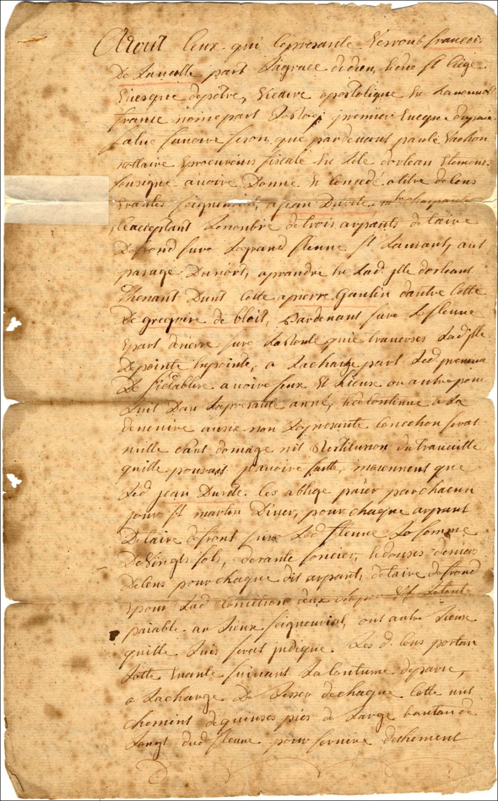 Concession de terre par Monseigneur de Laval à Jean Duval