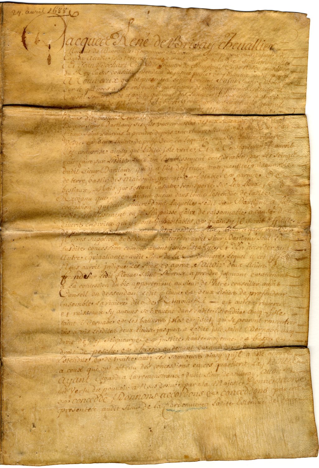- Confirmation de la concession de la seigneurie de l'Île Verte à Louis Rouer D'Artigny