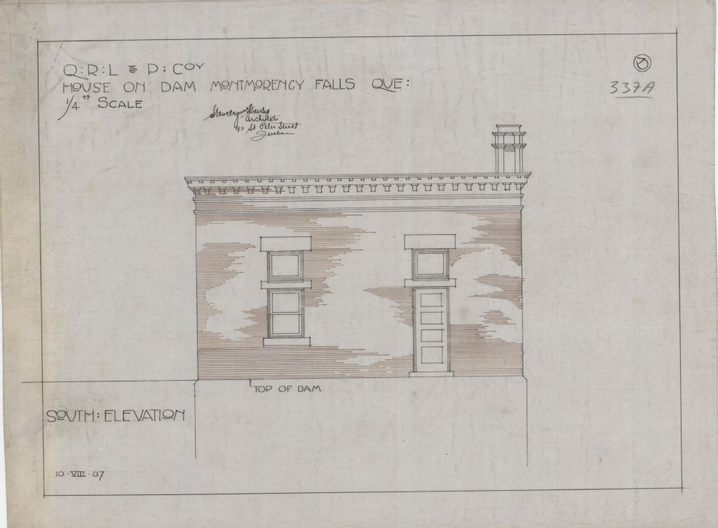 - Plans d'architecture concernant un bâtiment rattaché au barrage de la compagnie Québec Railway Light & Power co. située près des chutes Montmorency à Beauport. Le projet contient les dessins suivants : plan, élévation, coupe.Type de projet : usine, centrale électrique