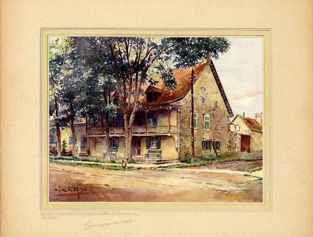 Maison Archambault, la plus vieille de l'Assomption, Québec, 1943, Archives nationales à Québec, Fonds Léonce-É. Cuvelier, (03Q,P551,D2,P33), Léonce Cuvelier.