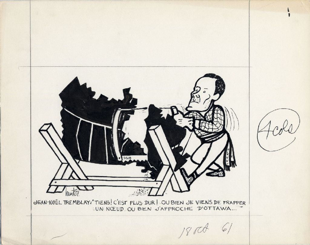 Jean-Noël Tremblay : " Tiens! C'est plus dur! Ou bien je viens de frapper un nœud ou bien j'approche d'Ottawa ", 18 octobre 1961, Archives nationales à Québec, Fonds Raoul Hunter, (03Q,P716,S1,P61-10-18), Raoul Hunter.