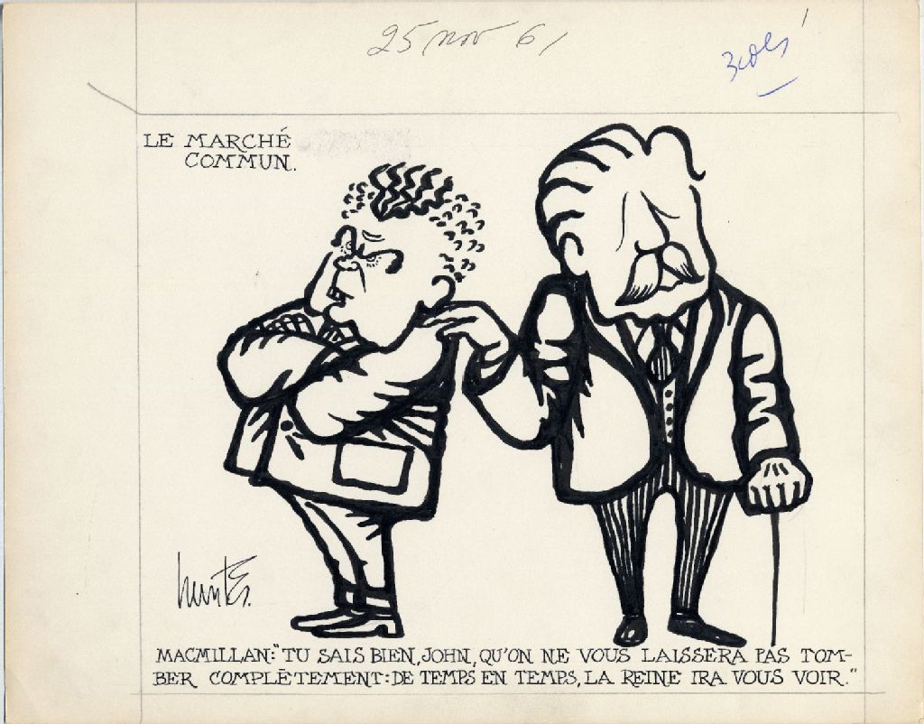 Le marché commun. MacMillan : " Tu sais bien, John, qu'on ne vous laissera pas tomber complètement : de temps en temps la reine ira vous voir "