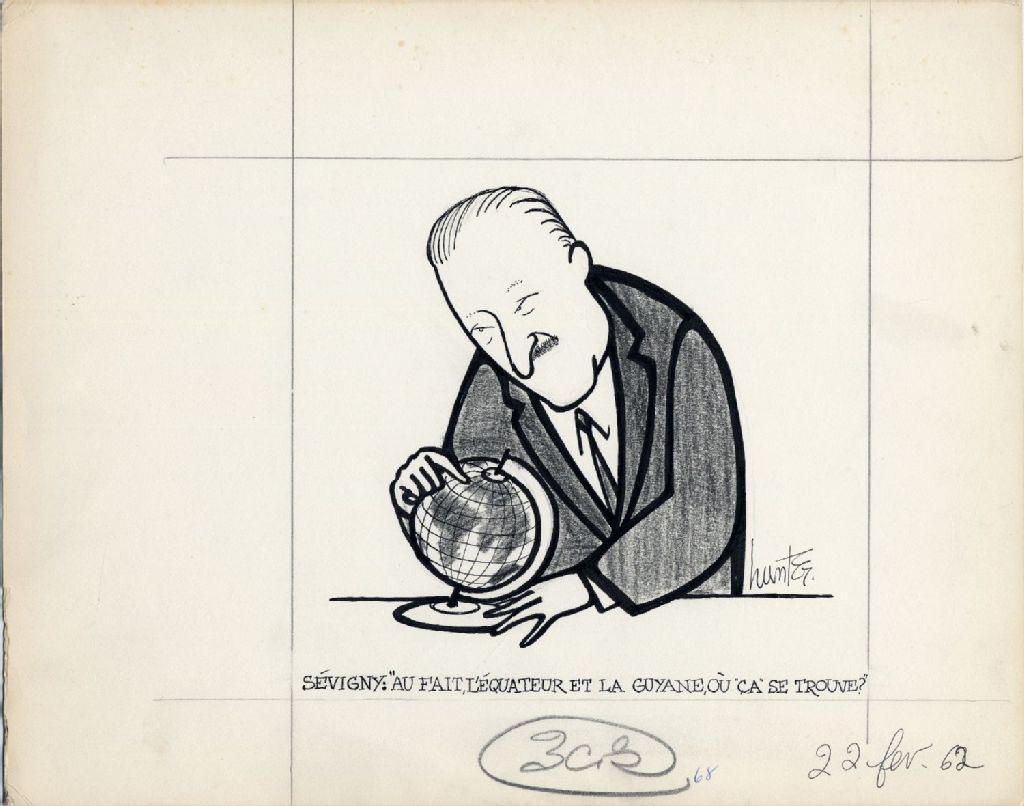 Sévigny: " Au fait, l'Équateur et La Guyanne, où "ça" se trouve ? ", 22 février 1962, Archives nationales à Québec, Fonds Raoul Hunter, (03Q,P716,S1,P62-02-22), Raoul Hunter.